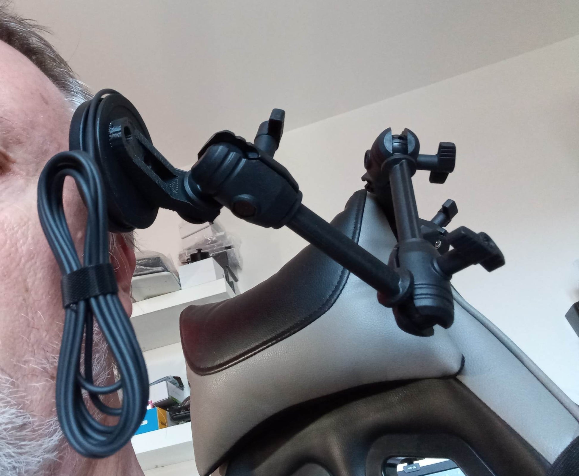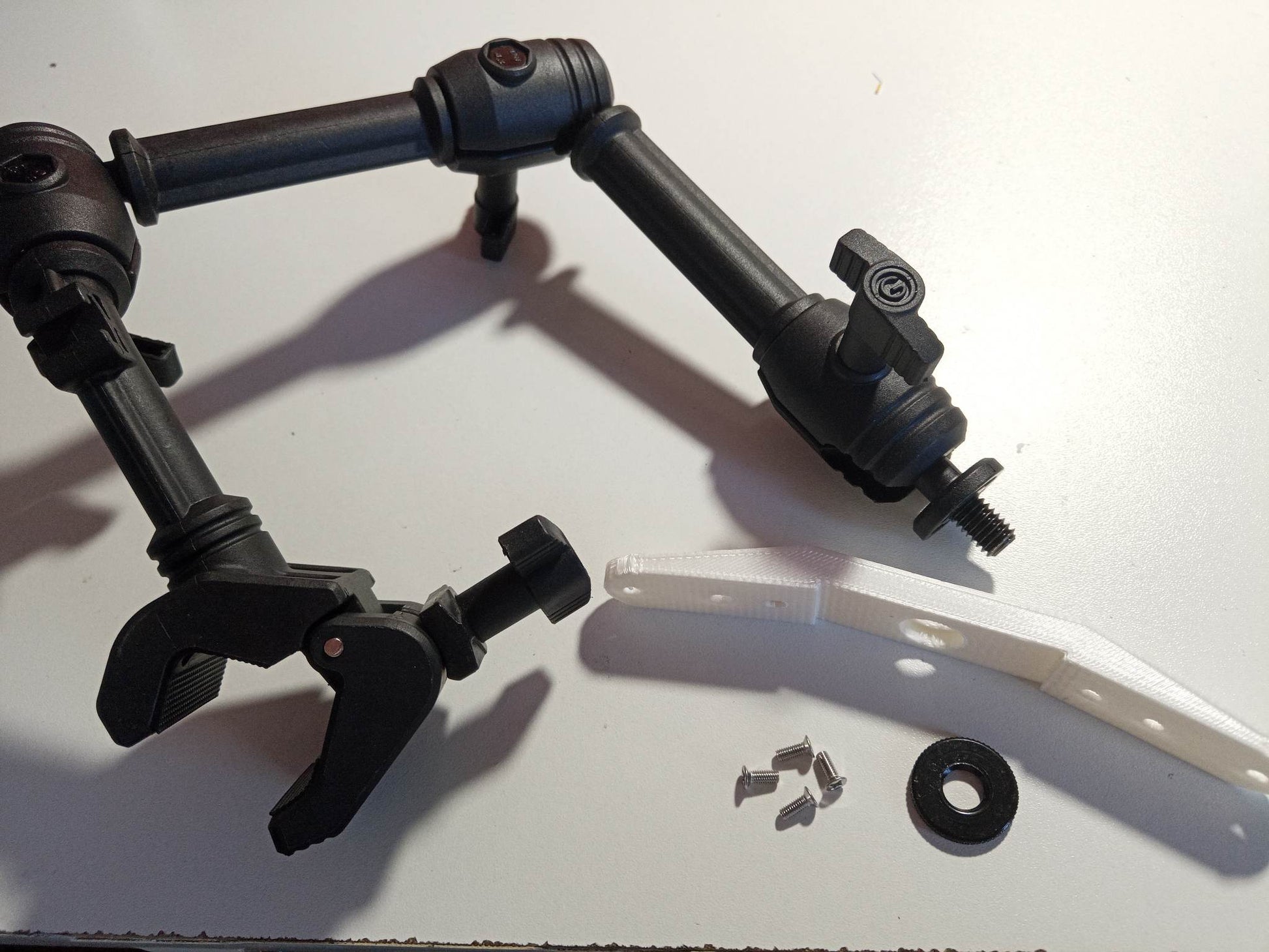 This adjustable articulated arm will allow you to attach the switches from Logitech Kit for example to activate them with the head, chin, etc....