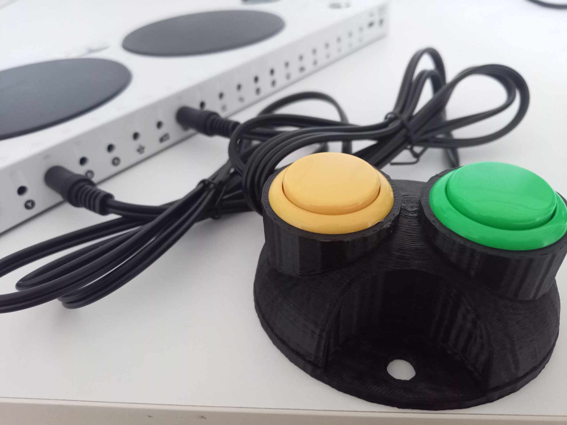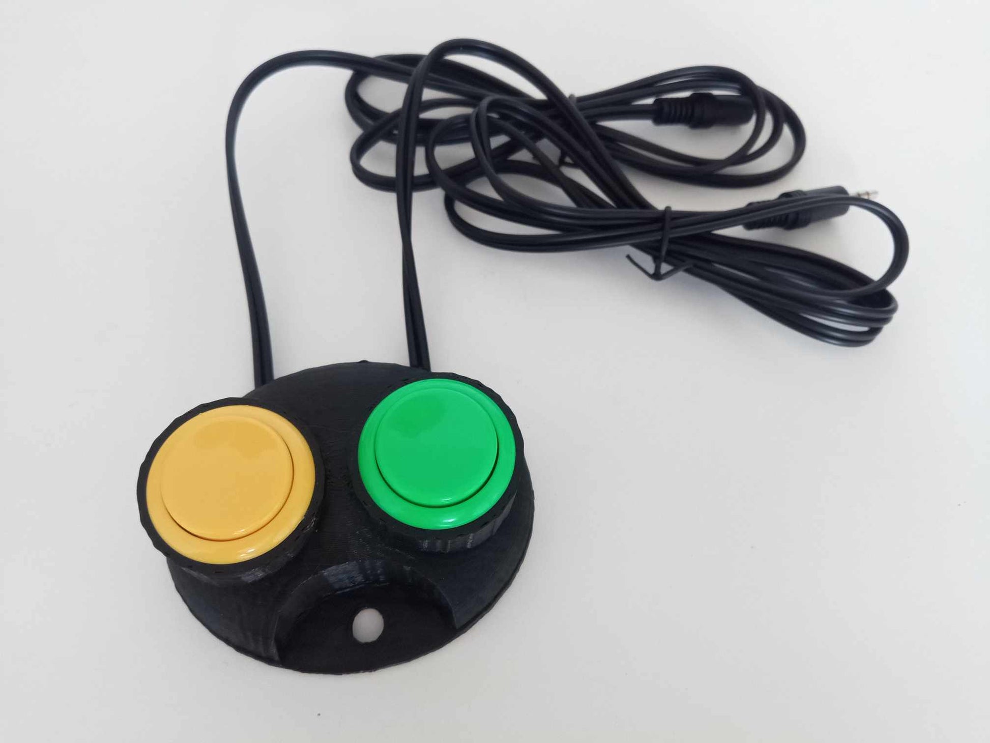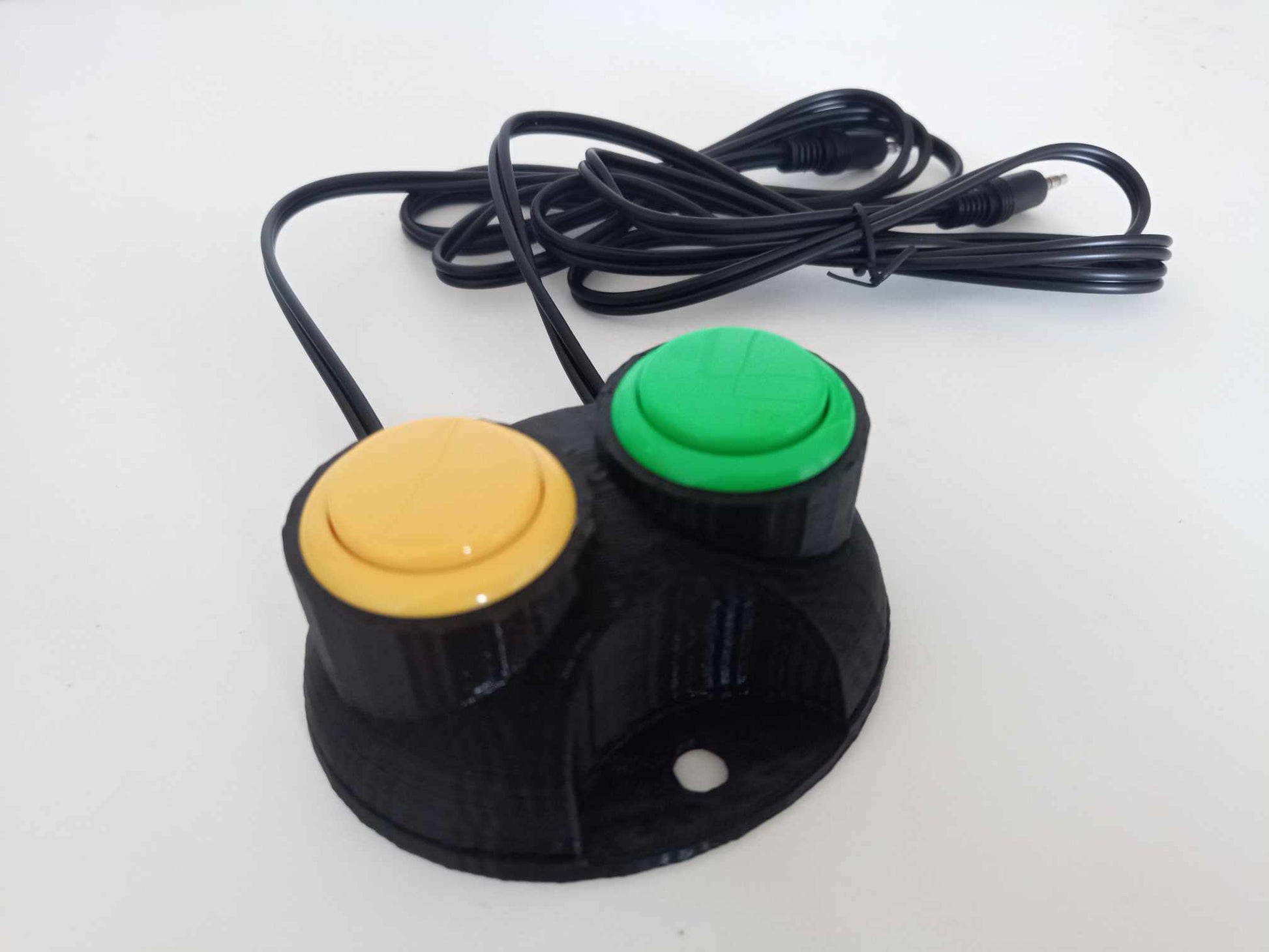 This double switch equipped with standard jack sockets and compatible with the Xbox Adaptive Controller and the Nintendo Flex Controller , allows you to click very easily in all possible ways (fist, foot, finger, etc.)