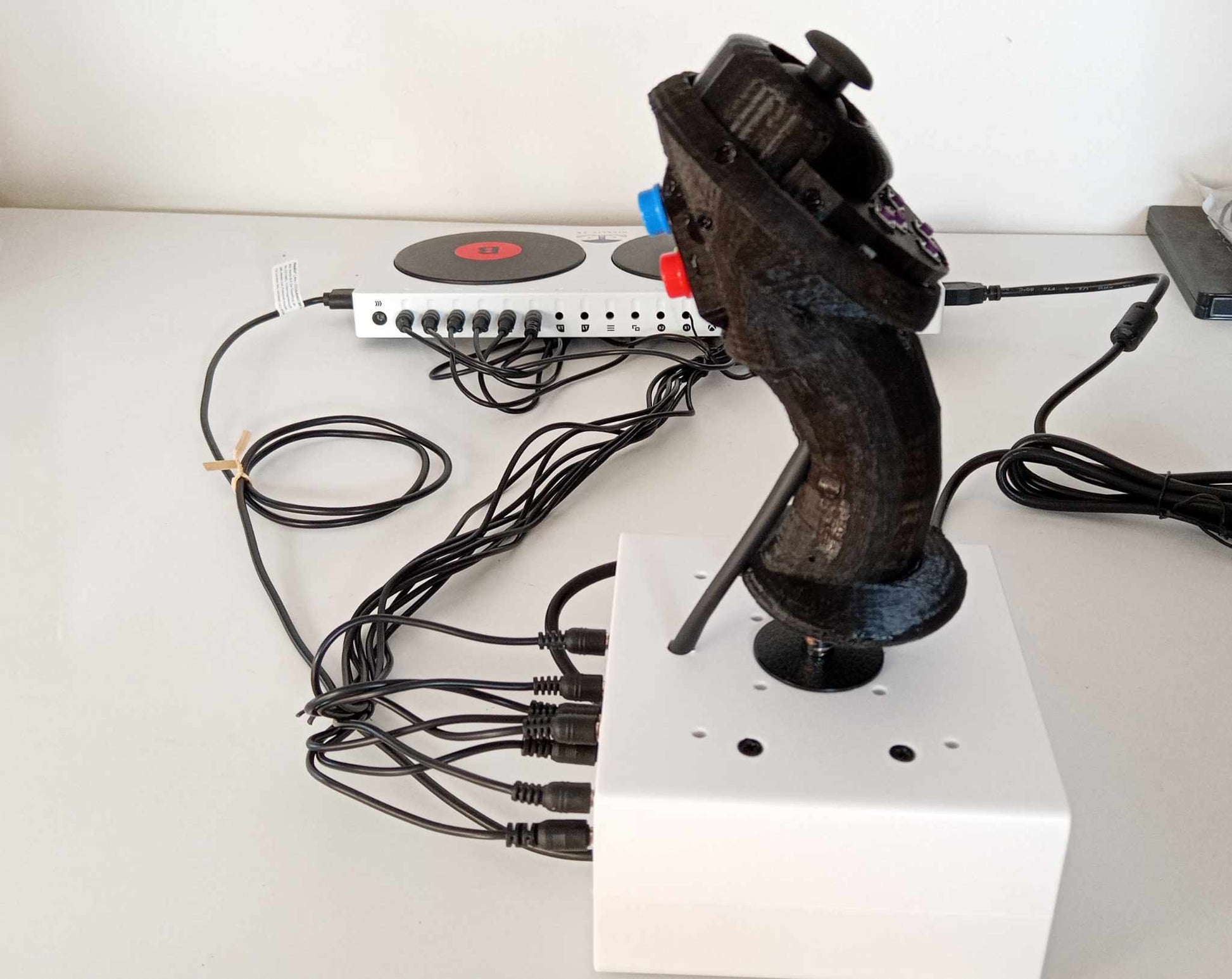 Comes with 2 USB sockets (left/right stick) and 8 jack cables for clicks.