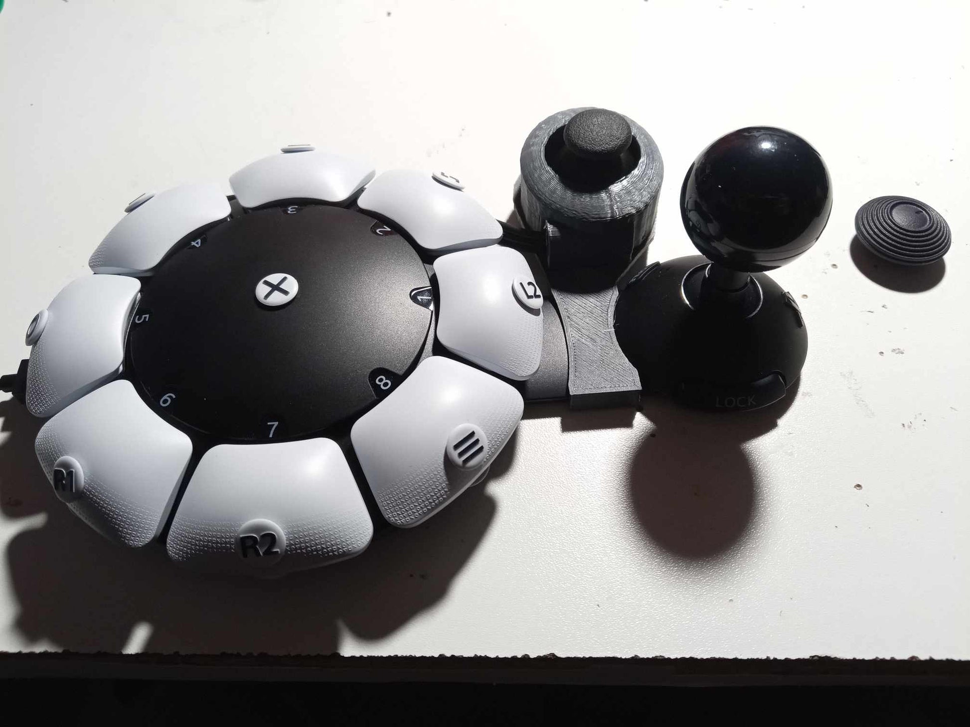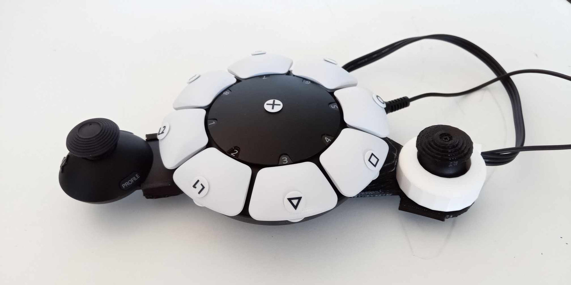 Option 1: 1 joystick on each side, base with 4 rubber feet for better stability, wiring by 4-contact jack sockets (joystick) + 1 single jack (click R3)