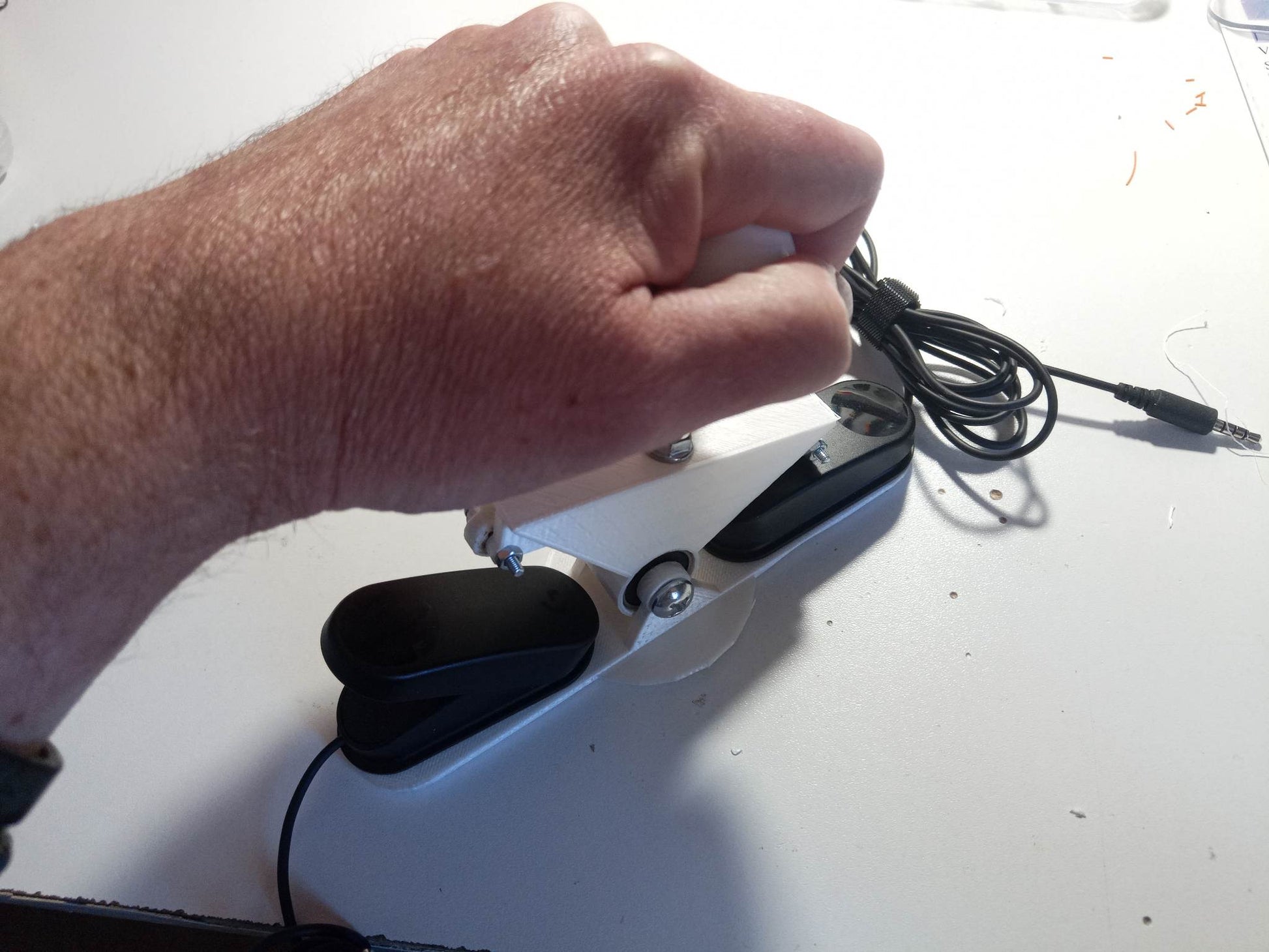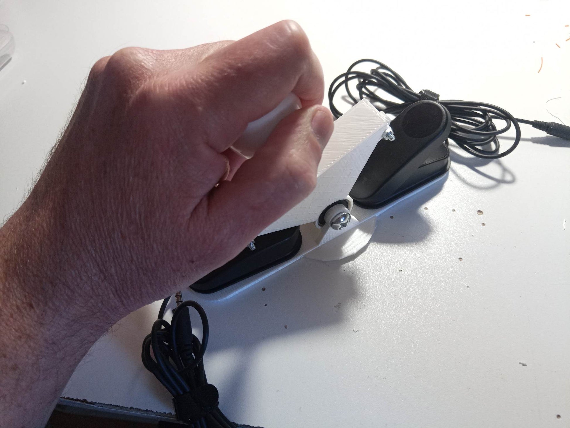 This system allows you to use your 2 analog triggers from the Logitech Adaptive Gaming Kit as a "Pull/Push" lever to manage the accelerator and brake with one lever instead of having to press the 2 small pedals.